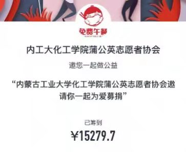 2021年11月9日内蒙古工业大学化工学院青年志愿者服务部正式面向全校为2021免费午餐活动招募志愿者,于15日对参与活动志愿者进行活动培训,并正式开始劝募。截止11月29日活动结束,共有150余名学生成为蒲公英志愿者协会的志愿,在志愿者的努力下,免费午餐线上募捐线下爱心义卖活动顺利进行,共有1537人参与募捐,共筹集善款15279.7元,其中义卖所得善款1000余元。