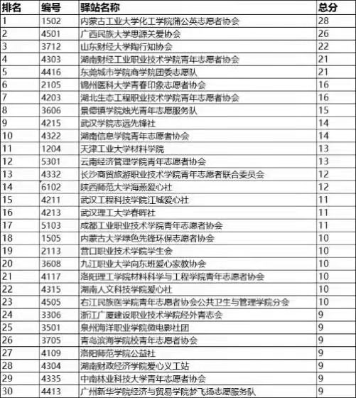 2021年度开展线上线下活动的大学生驿站共199所,从品牌传播、学期培训、规范执行、活动开展、筹款维度5个维度进行加分,取总排名前15%的驿站评为优秀驿站,共30所大学进行公示。其中我校内蒙古工业大学化工学院蒲公英志愿者协会免费午餐驿站高居榜首荣获2021年度“优秀驿站”。