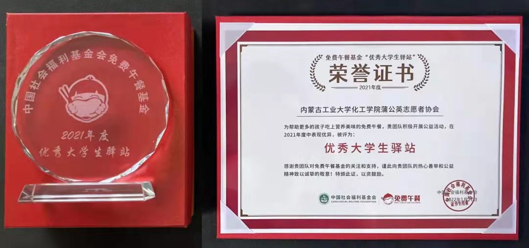 喜报|内蒙古工业大学化工学院蒲公英志愿者协会免费午餐大学生驿站荣获2021优秀免费午餐大学生驿站
