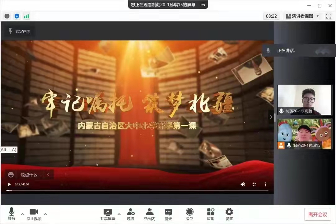 为深入贯彻习近平总书记关于“大思政课”建设的重要指示精神,进一步加强青少年铸牢中华民族共同体意识教育,化工学院于2022年3月8日组织全体学生线上学习以“牢记嘱托 筑梦北疆”为主题的开学第一课。