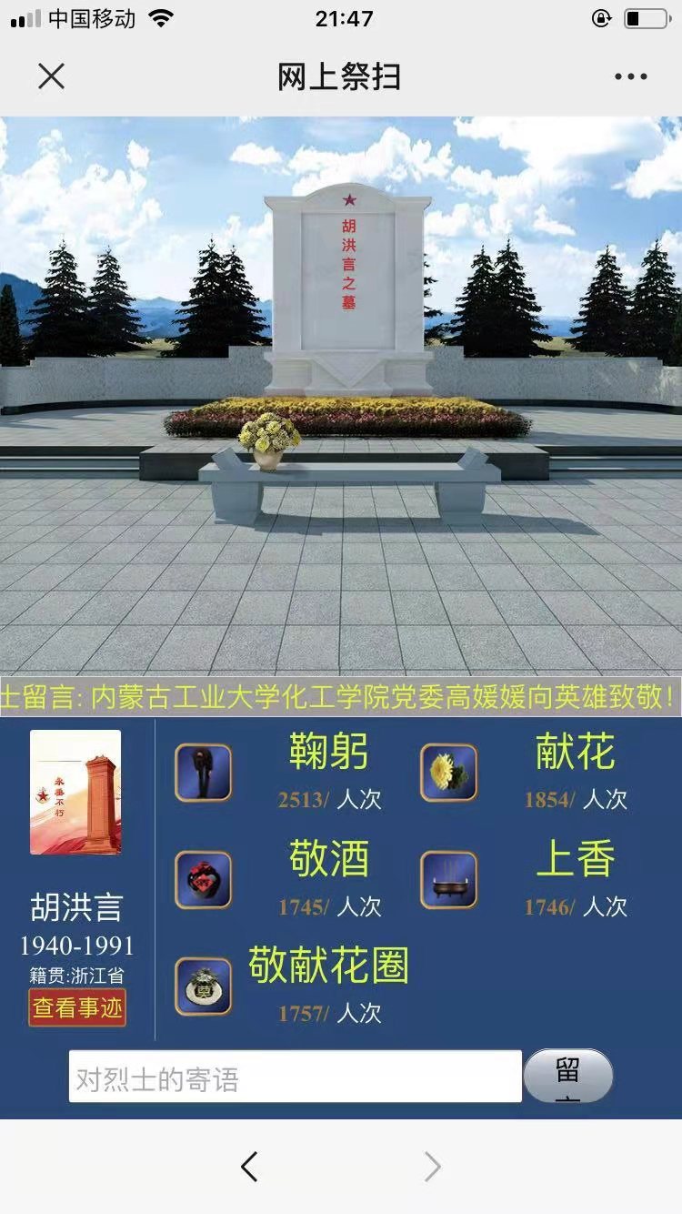 化工学院同时组织全体党员、团员在线上开展“清明祭英烈,永远跟党走”活动,用上网祭奠英烈的方式,抒发缅怀和敬意,慎终追远、缅怀先烈、坚定信念、凝聚力量、传承红色基因。