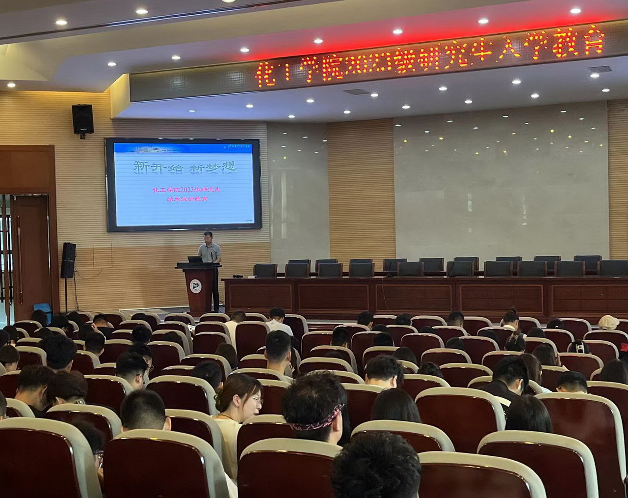 为切实做好2023级研究生新生入学教育工作,帮助新生坚定理想信念、厚植家国情怀、了解学校文化、适应学校环境、明确学习科研目标、合理规划职业生涯,化工学院9月9日上午在化工楼报告厅举行2023级研究生全体新生入学教育大会。学院院长白杰、研究生教学秘书班延鹏,2023级研究生班主任崔大明以及研究生全体新生共140余人参加,会议由学院副院长冀国俊主持。