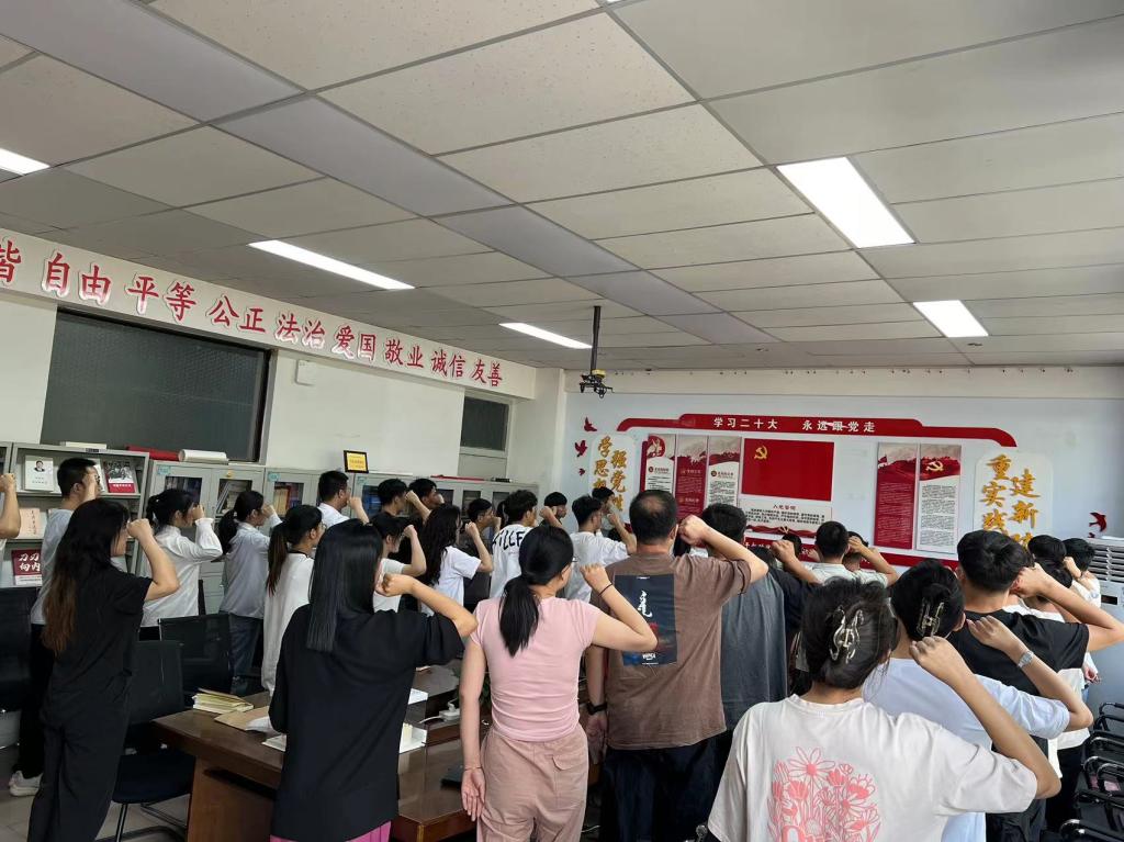 院党委副书记、副院长李佳带领与会师生党员集体重温入党誓词。在铮铮誓言中,大家深情回顾了党的伟大征程,更加深刻的感受到我们党103年前起航的小小红船,如今已成为“中国号”巍巍巨轮的历史成就。