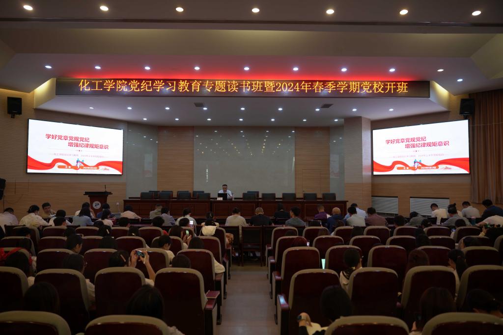 为扎实推荐党纪学习教育,进一步加强学院基层党组织建设,加强入党积极分子和党员发展对象入党前的培训工作。5月16日,化工学院2024年春季学习党校开班。开班仪式由学院党委副书记、副院长李佳主持。
