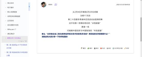3.今年还特意在讨论区设置了“燃情冰雪,科技奥运”的栏目,第二十四届北京冬季奥林匹克运动会不仅是一场精彩绝伦的“冰雪盛宴”,更是一场闪耀着中国创新与中国智慧的“科技盛宴”。请同学们分享关于“北京奥运会二氧化碳跨临界制冰技术到底有多高级?其背后的化学原理是什么?”的想法与感受,增强民族自豪感!