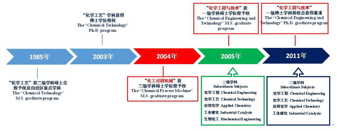 目前,化工学院拥有1个化学工程与技术一级博士学科,1个化学工程与技术一级硕士学科,1个化工过程机械二级硕士学位授予点及1个材料与化工(化学工程方向)专业硕士学位授予点(图2)。其中,“化学工程与技术”学科是我校建立最早、综合实力最强和社会影响力最大的学科之一,2003年就成为内蒙古自治区区属高校中第一个获化工类博士学位授权专业。依托于本学科的本科“化学工程与工艺”专业在全国第四轮学科水平评估中获评B-成绩。