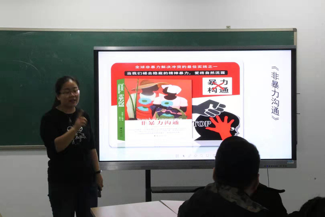 本次读书会通过对《非暴力沟通》这本书的分享,带大家领会到了语言的艺术,使大家走进了一个不一样的语言世界,一句话不同的表达方式就会有不同的结果。让大家体会到高尚的生活是受爱激励并由知识导引的。使同学们学习到了读书要有感受,要有审美感,对于他人的金玉良言,要能融会贯通,并使之付诸实践。