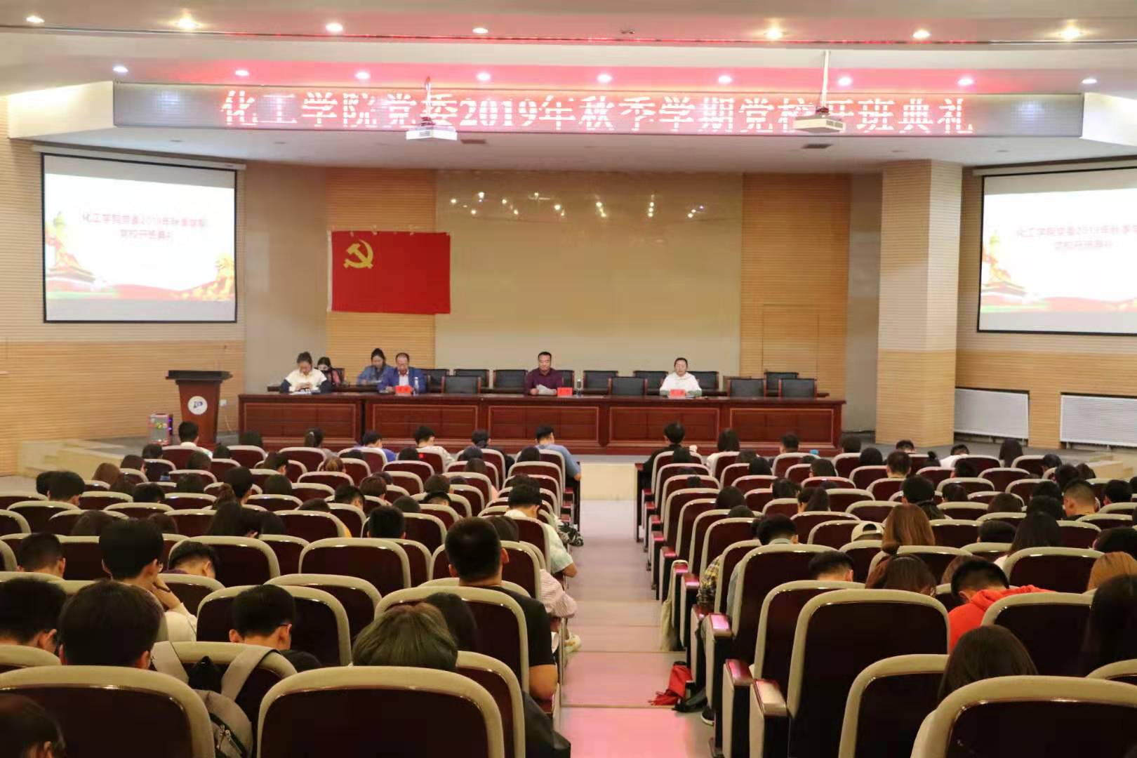 为进一步加强我院基层党组织建设,加强入党积极分子和党员发展对象入党前的教育工作,确保发展党员的质量,积极引导学生党员与时俱进,实践探索,创新发展。化工学院党委于9月27日晚在三教报告厅举行2019年秋季学期党校培训班开班仪式。化工学院党委书记王凯,副书记、副院长张建出席,全院学生党员及第十八期党校学员共五百余人参加,院党委委员、团委书记任敏主持开班仪式。