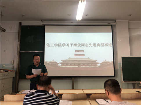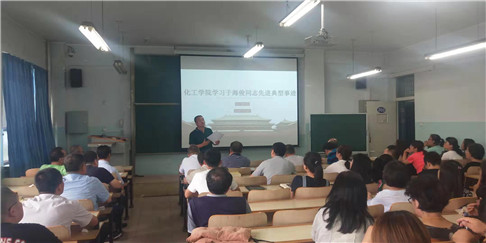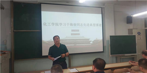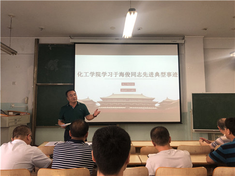 7 月18日下午,化工学院召开中心组扩大学习会学习于海俊同志先进事迹,会议由党委书记王凯主持,学院党委班子成员、全体教工党员、部分教工参加会议。