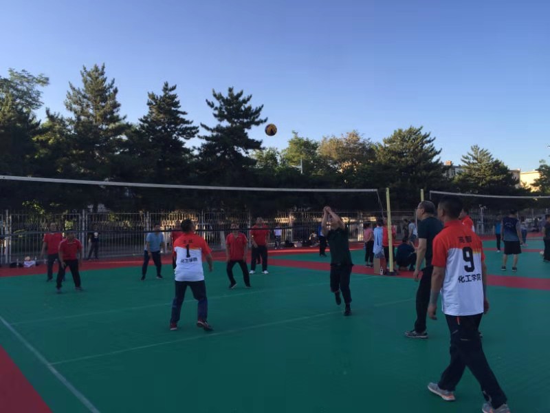 虽暑气炎炎,但丝毫不影响化工学院的老师们,在操场上为即将开始的排球比赛进行热身。温暖的阳光洒在赛场上,灿烂的笑容在老师们的脸上绽放,那热情感染着我们在场的每一个人。比赛中,化工学院的老师们个个精神抖擞,身姿矫健,英姿飒爽。他们怀着对排球运动的热爱,在烈日下奋力防守、组织进攻,打出了一个又一个漂亮的防反。精彩对打、强力扣杀、机智轻吊、顽强救球、以快制快等各种战术在老师们的较量中得以充分体现。