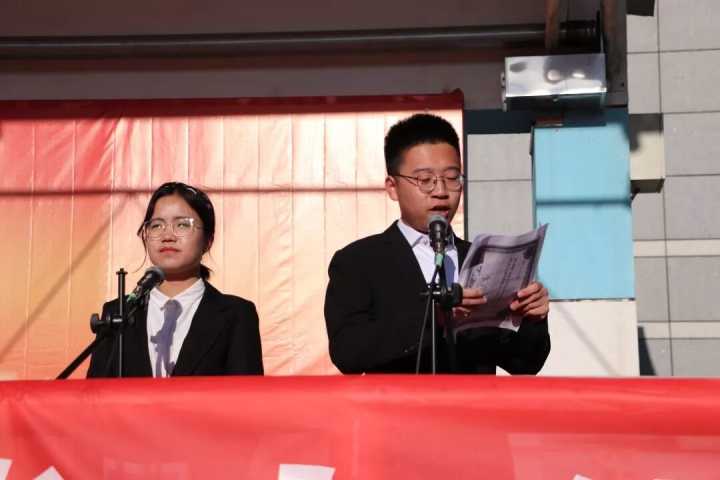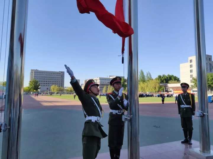 英姿飒爽的国旗班成员迈着整齐的步伐护送鲜艳的五星红旗走向升旗台,伴随着雄壮的国歌声,鲜艳的五星红旗徐徐升起,在清晨的阳光下迎风飘扬,全体师生肃立注目、奏唱国歌。一颗颗赤诚的心守望着那面红色旗帜,坚定而又执着,深怀对国旗崇高的敬意和对祖国无限的热爱。生物17-1夏婷同学做国旗下演讲。她倡议,作为新时代新青年应该继承和发扬五四精神,勇于创新、不断进取,将爱国之情、报国之志融入生活、投进梦想,争做品学兼优的社会主义建设者和可靠接班人!