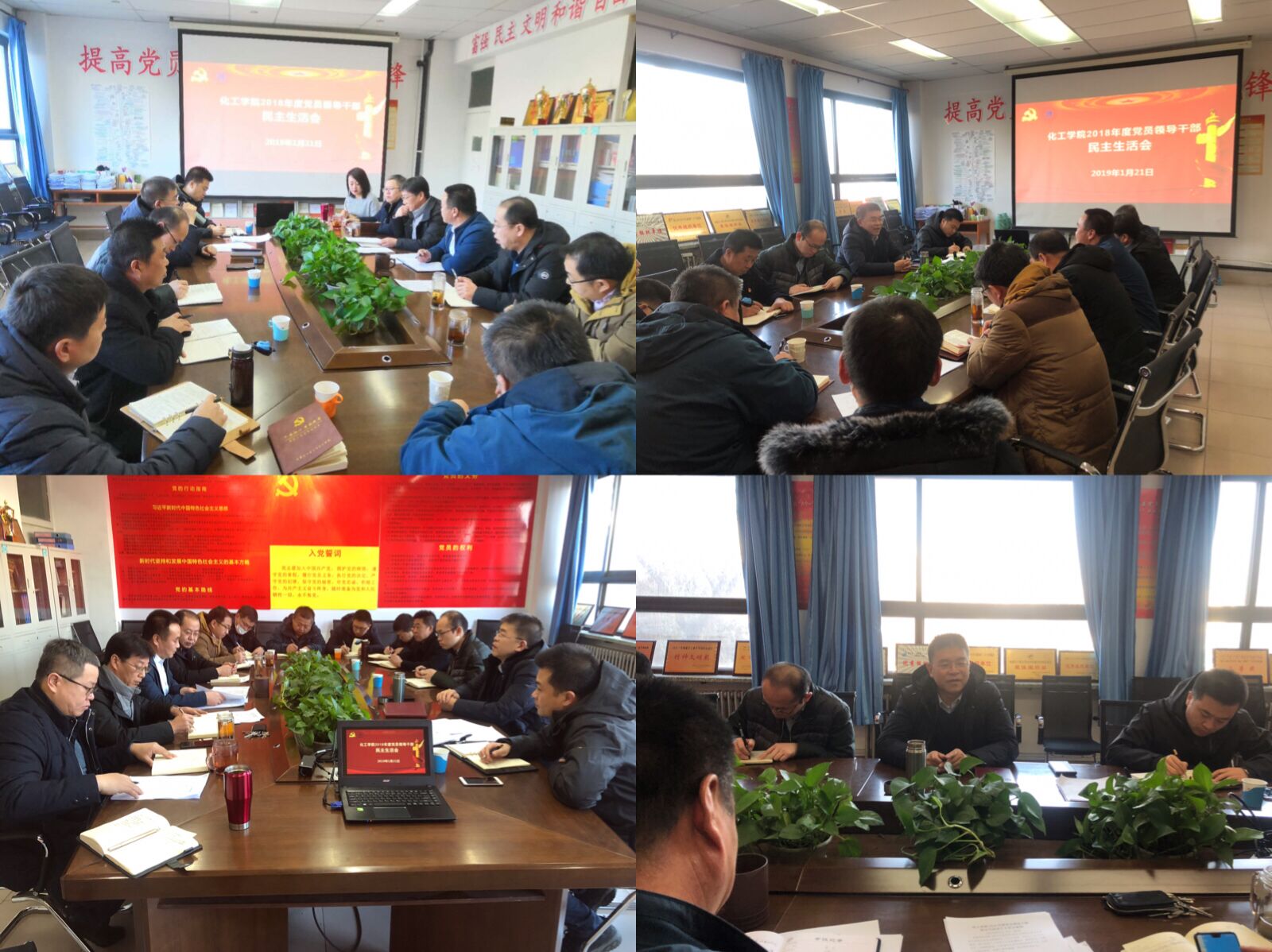 2019年1月21日上午,化工学院党委召开了2018年度党员领导干部民主生活会,校党委书记金瑞同志到会指导,院班子成员参加会议,会议由院党委书记王凯同志主持。
