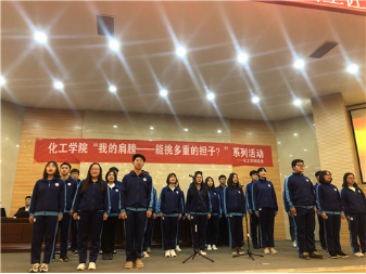 为深入学习贯彻习近平总书记关于宣传思想工作的重要思想,全面贯彻从落实全国全区宣传思想工作会议精神,作为我校“礼敬英雄”教育活动周活动之一,化工学院团委于12月20日下午在第三教学楼报告厅召开《我的肩膀--能挑多重的担子?》系列活动之"向英雄致敬,争做大国工匠"主题团日活动。校团委副书记金燕飞、我院党委副书记、副院长张建、校院两级其他团学辅导员老师出席本次活动。化工学院全体学生干部及我校部分学院学生共480人参加活动。