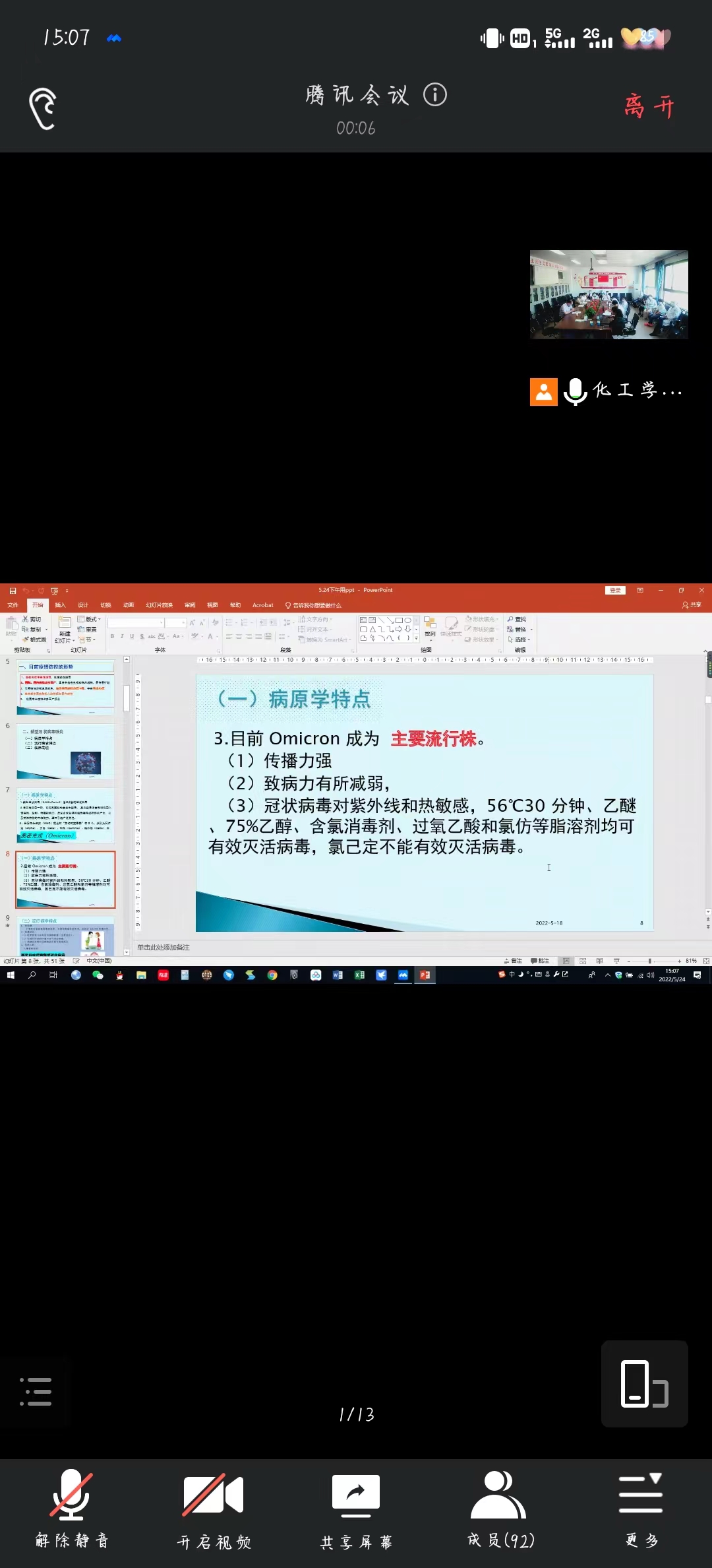 为进一步提高学院应对突发疫情的组织、协调和联动能力,切实保障广大师生的身体健康和生命安全。5月24日,化工学院举办疫情防控专题培训,邀请校医院院长沈立峰主讲,学院领导行政人员线下参加讲座,全体教职工线上进行学习,学院党委副书记、副院长张建主持。