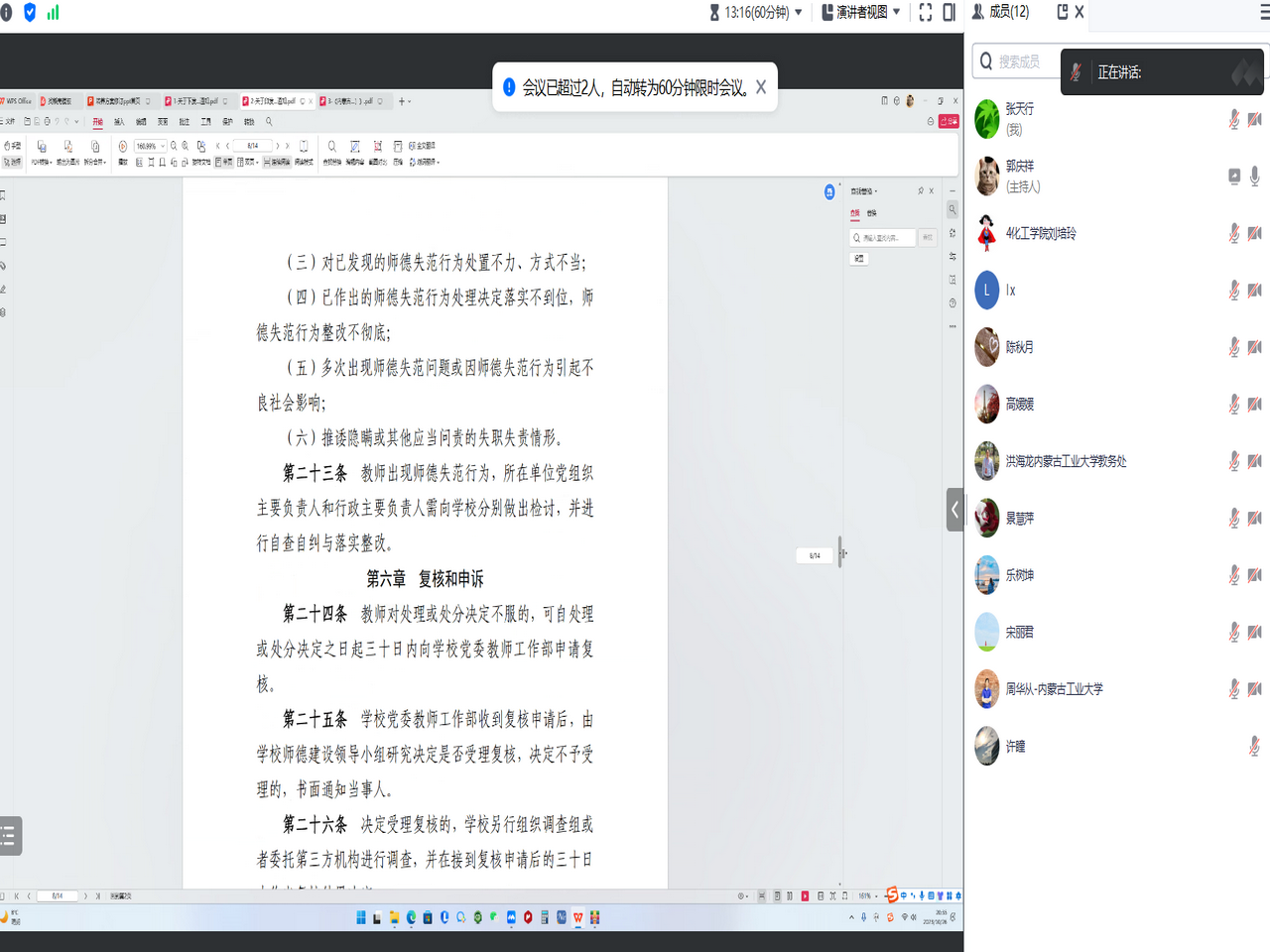 各系围绕《关于进一步弘扬科学家精神加强作风和学风建设的意见》《高等学校预防与处理学术不端行为办法》《内蒙古工业大学教师本科教学工作规范(2018年修订)》《内蒙古工业大学教师师德失范行为处理办法(试行)》《内蒙古工业大学教学事故认定与处理办法(2017年修订)》等内容进行了深入研讨。