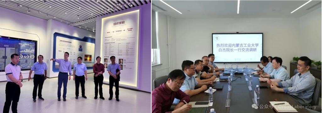 为深化校地合作、推动产学研协同创新,2025年6月12日内蒙古工业大学化工学院白杰院长、冀国俊副院长率学院科研骨干一行赴鄂尔多斯实验室开展专题调研。鄂尔多斯实验室科研副主任杨艳辉、主任助理邓欣及相关职能部门负责人陪同参观并参与座谈。