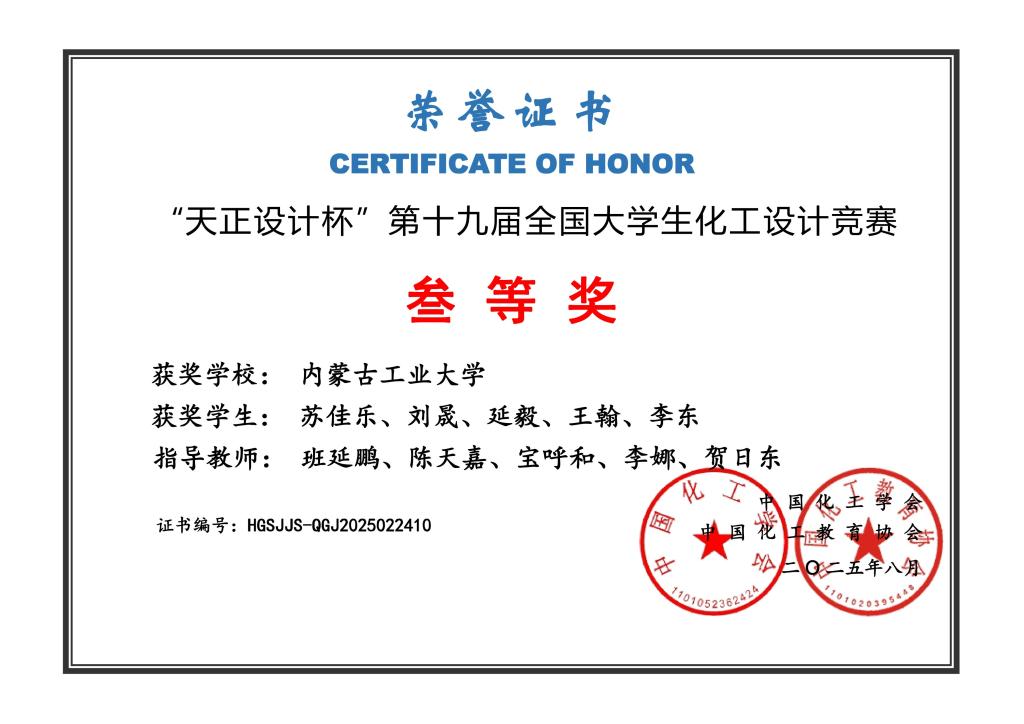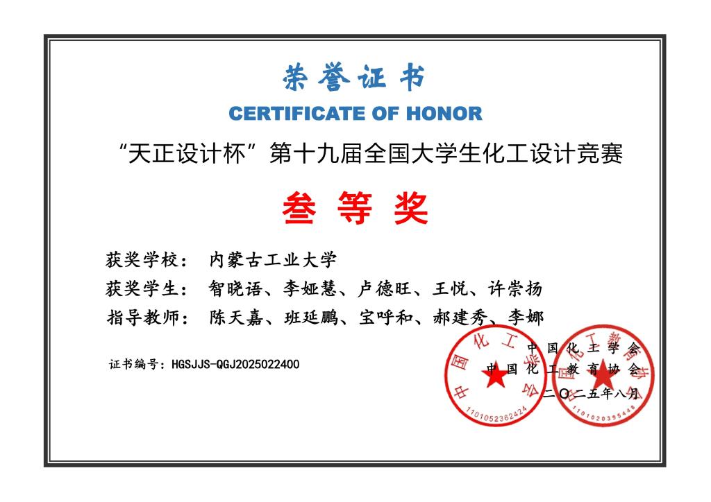 此次赛事佳绩不仅是我院学子专业能力与创新精神的集中体现,更是学院教育教学成果的重要印证。未来,我院将以此次荣誉为契机,进一步深化创新教育改革,持续践行 “以赛促教、以赛促创” 的育人理念,不断优化化工专业人才培养体系、提升教育教学质量,为国家化工行业高质量发展输送更多高素质、创新型优秀人才。