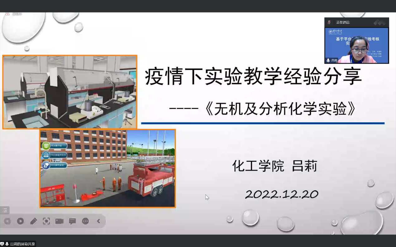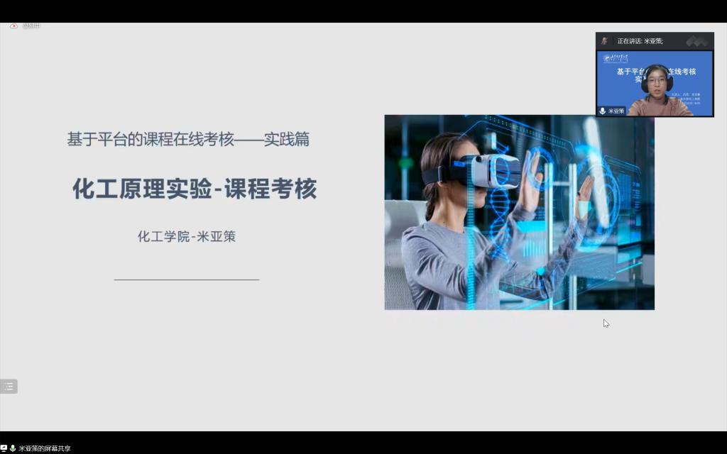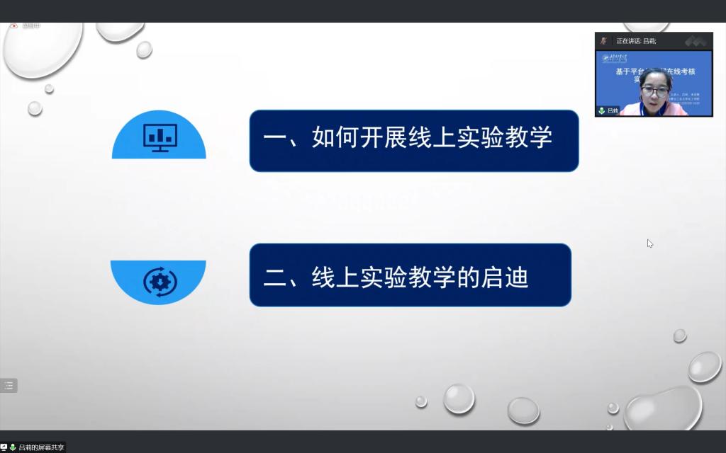 吕莉副教授以《无机及分析化学实验》课程为例,从如何开展线上实验教学,线上实验教学的启迪和微瑞科技虚拟仿真实验平台的使用等三方面进行了经验分享。米亚策老师以《化工原理实验》课程为例,从考核方式及内容,实施过程和欧倍儿虚拟仿真实验平台的使用等方面做了经验分享。两位老师最后与参会老师进行了充分交流。