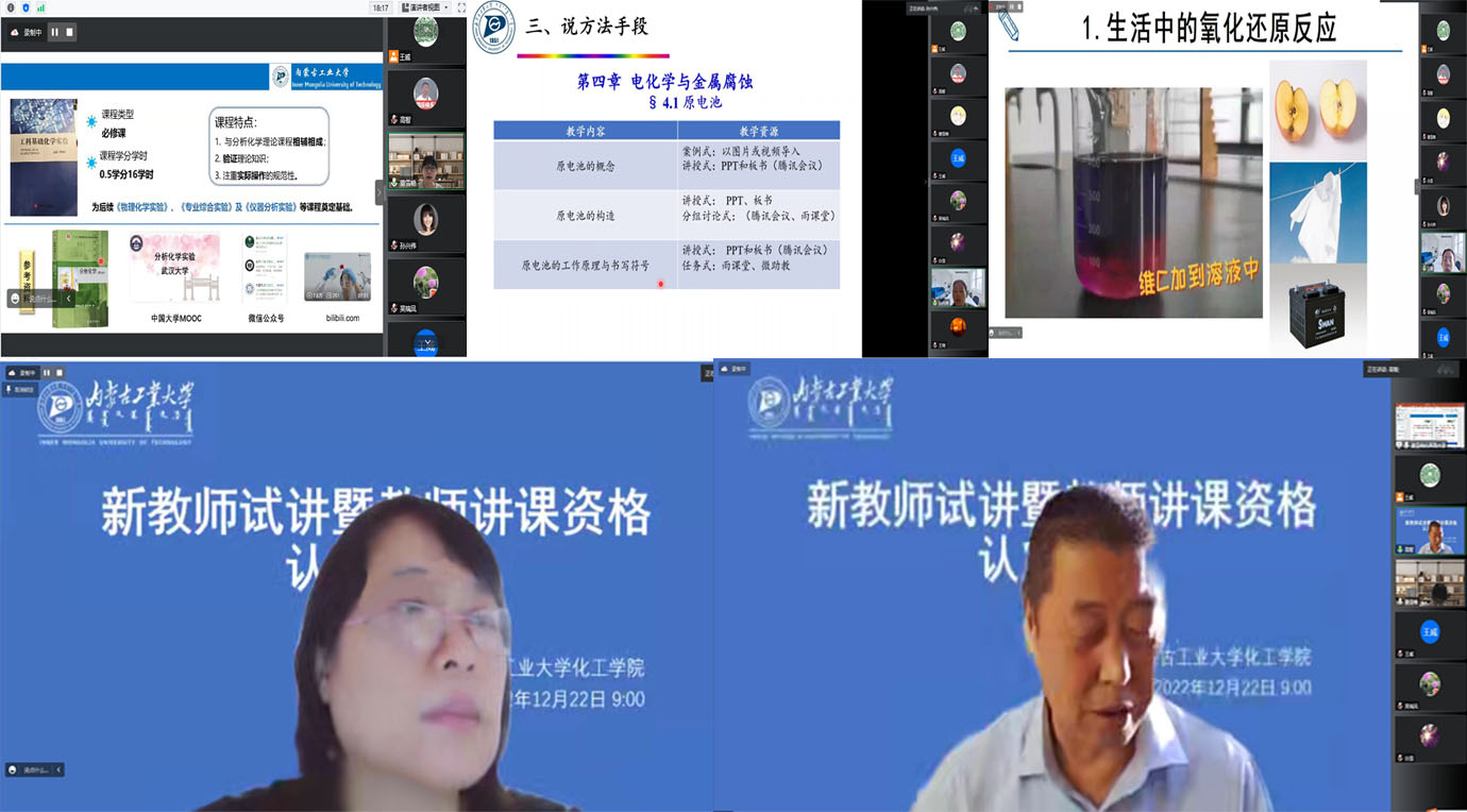 为了提高学院青年教师课堂教学授课质量,加强教师队伍建设,帮助新教师迅速成长,2022年12月22日上午9:00,学院在线进行了新教师试讲暨教师讲课资格认定培训。化工学院教学督导组组长、安全工程系系主任高智副教授、应用化学系系主任吴瑞凤教授、无机非金属材料工程系白雪教授任点评专家。