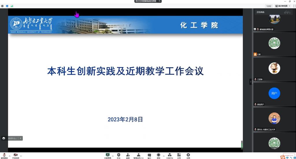 2023年2月8日,学院线上召开2023春学期开学前教学工作会议,副院长解瑞俊、各系正、副主任参加了会议。