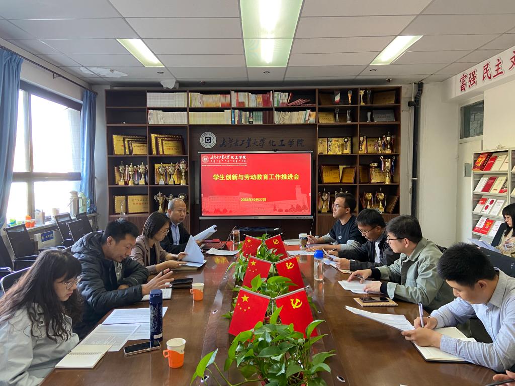 2023年10月27日下午,学院在化工楼211组织召开了本科生创新与劳动教育工作推进会、各系正副主任、教务中心主任、全体毕业班班主任参加会议。