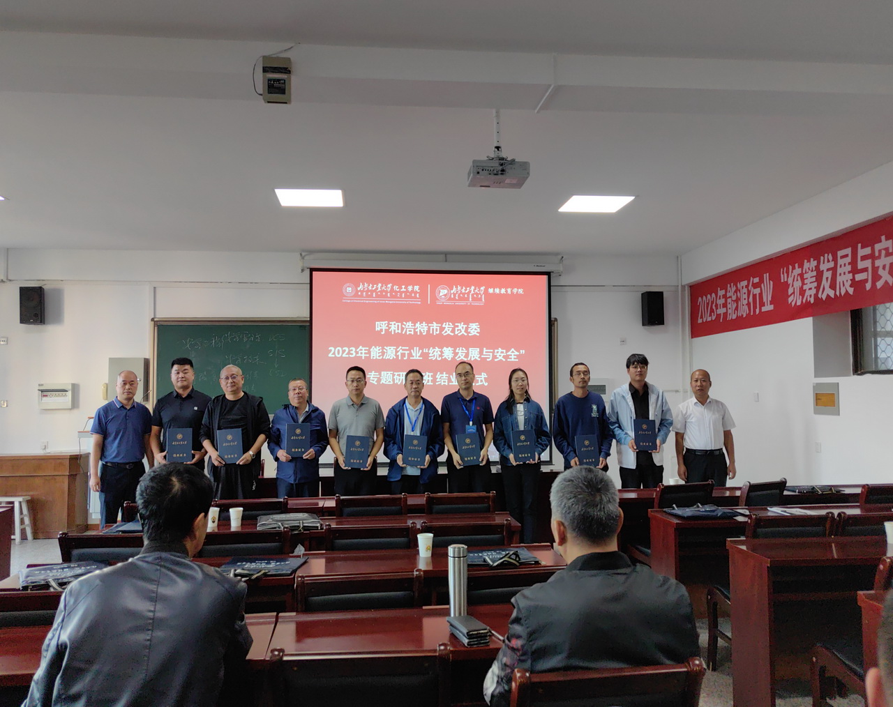 9月26-27日,呼和浩特市发发展和改革委员会2023年能源行业“统筹发展与安全”专题研修班在我院顺利举行。呼和浩特市发发展和改革委员会安全监管科科长许鲁贵,校继续教育学院院长王清华,化工学院党委书记王凯参加开班仪式,副院长解瑞俊参加研修班结业仪式并为学员颁发结业证书。