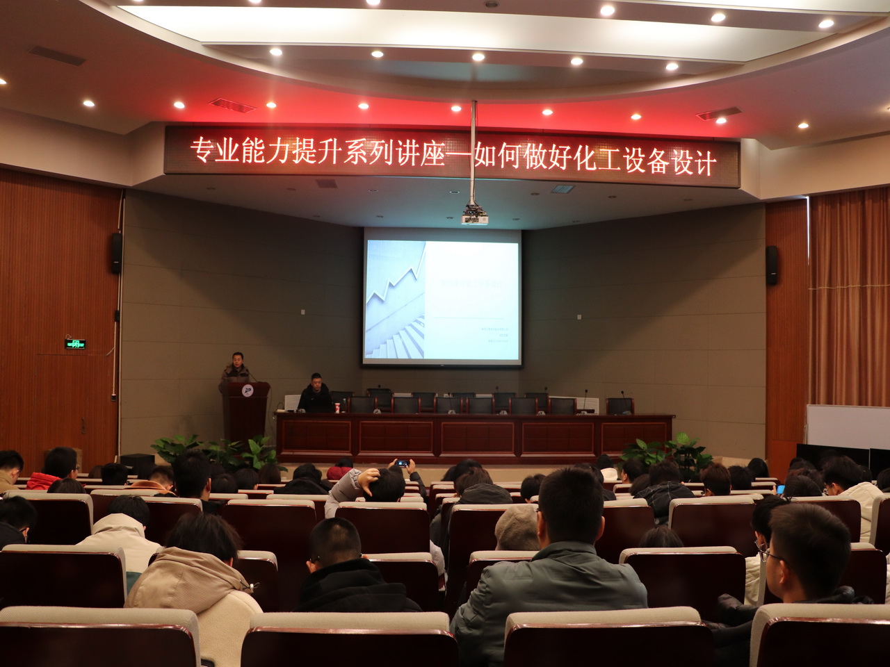 1227日,过程装备与控制工程系在新城校区图书馆报告厅举办了“专业能力提升系列”讲座——“如何做好化工设备设计”翱华工程技术股份有限公司专业副总工程师益拉拉图应邀作专题培训讲座。过程装备与控制工程专业全体教师及学生参加了培训。