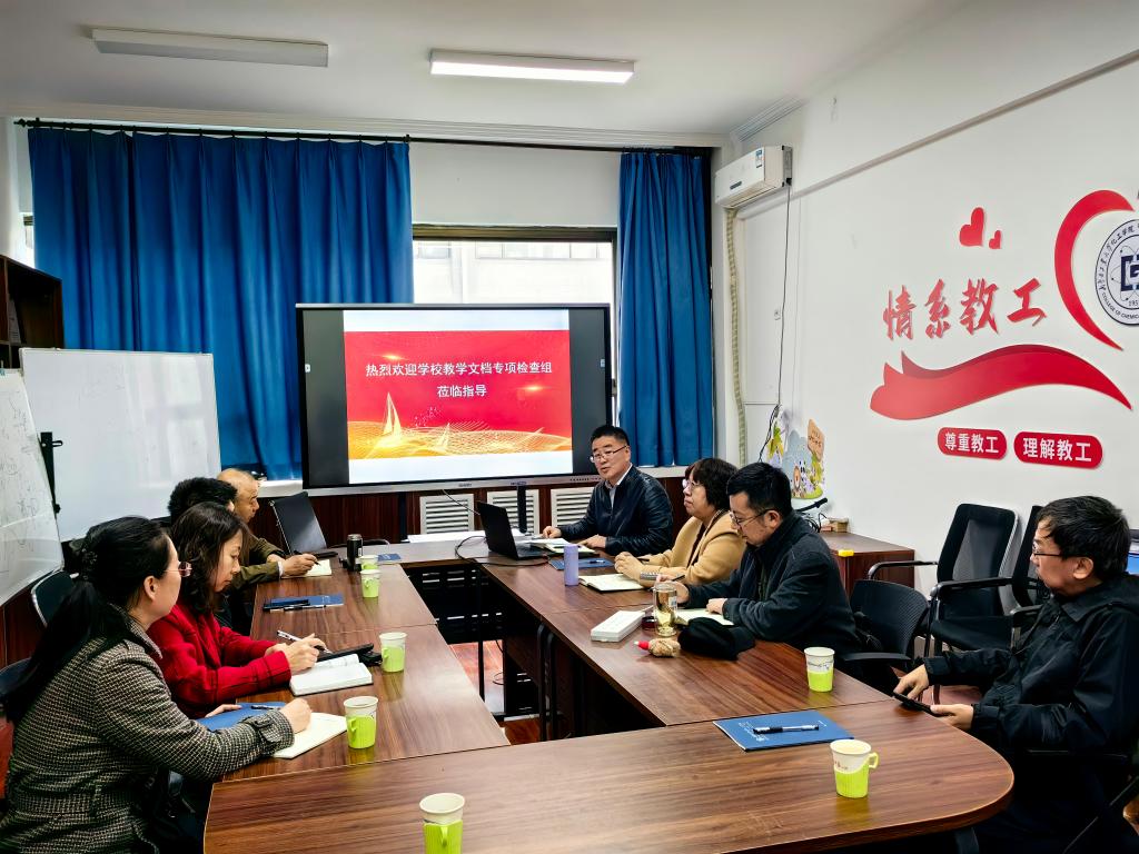 3月25日上午,学校教学文档专项检查组一行检查我院教学文档归档工作,学院副院长滕英跃、全体系主任和部分骨干教师参加。