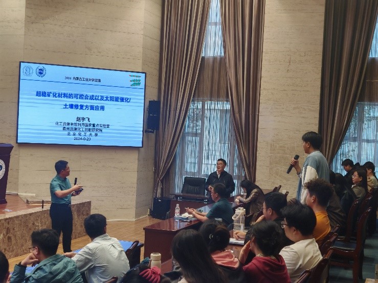 赵教授围绕超稳矿化材料的可控制备和太阳能催化土壤修复方面应用展开学术讲座,介绍了其在相关领域的研究成果。会后,与参会师生进行了相关讨论和交流。