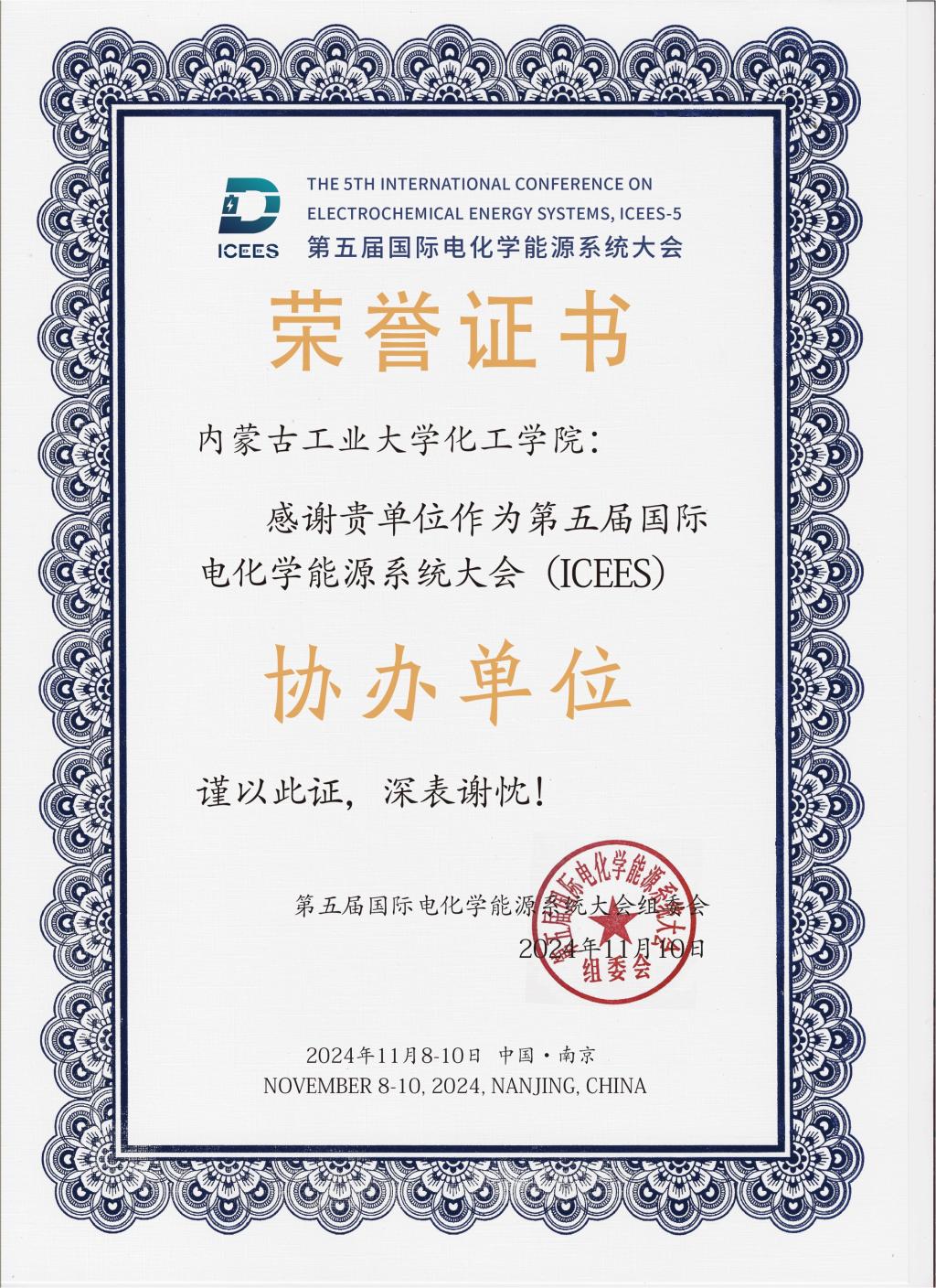 11月8-10日,由东南大学、上海交通大学、国际储能材料学会主办的第五届国际电化学能源系统大会于在南京隆重召开。化工学院作为协办单位参与了本次会议的组织与筹备,并组织14位师生参加大会。
