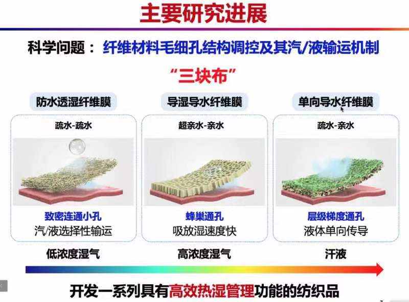 王先锋研究员针对防水透湿纤维膜、导温导水纤维膜、单向导水纤维膜等内容作了深入介绍,对师生提出的问题进行了详细解答。