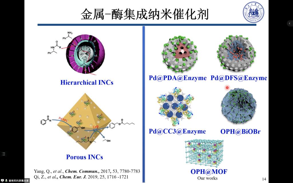 姜艳军教授围绕金属-酶集成催化剂、非集成式化学-酶级联催化体系、多酶催化体系、金属-酶级联催化降解农药和污染物等内容作了深入介绍,对师生提出的问题进行了详细解答。