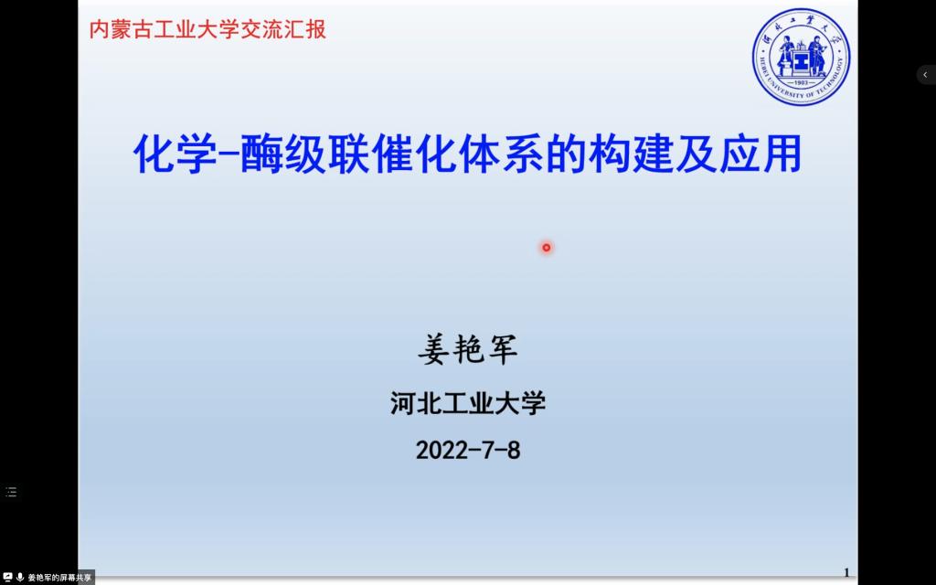 7月8日下午,学院与科研处共同举办线上学术报告会。会议邀请河北工业大学化工学院副院长,博士生导师姜艳军教授以“化学-酶级联催化体系的构建及应用”为题作了精彩的报告。