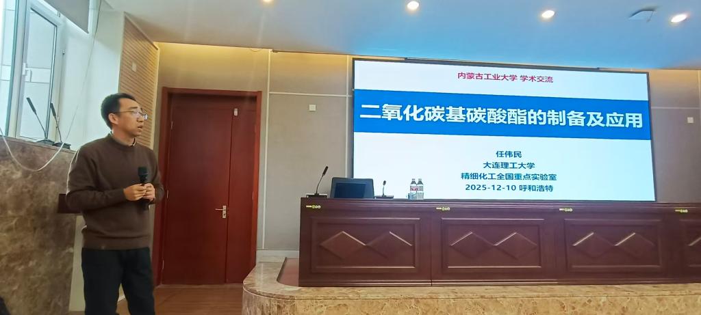 2025年12月10日,大连理工大学精细化工全国重点实验室副主任任伟民教授应邀莅临我院,开展了一场题为“二氧化碳基碳酸酯的制备及应用”的学术讲座。本次讲座由化工学院竺宁教授主持,吸引了学院多位骨干教师及博硕士研究生的积极参与。任伟民教授在讲座中详细介绍了二氧化碳资源化利用的基础研究与工程技术领域的核心问题,并分享了其团队在该领域的最新研究成果和创新思路。他通过巧妙的设计和深入浅出的讲解,展示了二氧化碳基碳酸酯的制备方法及其在多个领域的应用前景。讲座内容丰富、观点新颖,不仅拓宽了与会师生的学术视野,还有效激发了学生们对科研工作的兴趣和热情。此次学术交流活动不仅促进了我院与大连理工大学之间的学术交流与合作,也为我院师生提供了一个宝贵的学术交流平台,进一步推动了我院在相关领域的研究与发展。