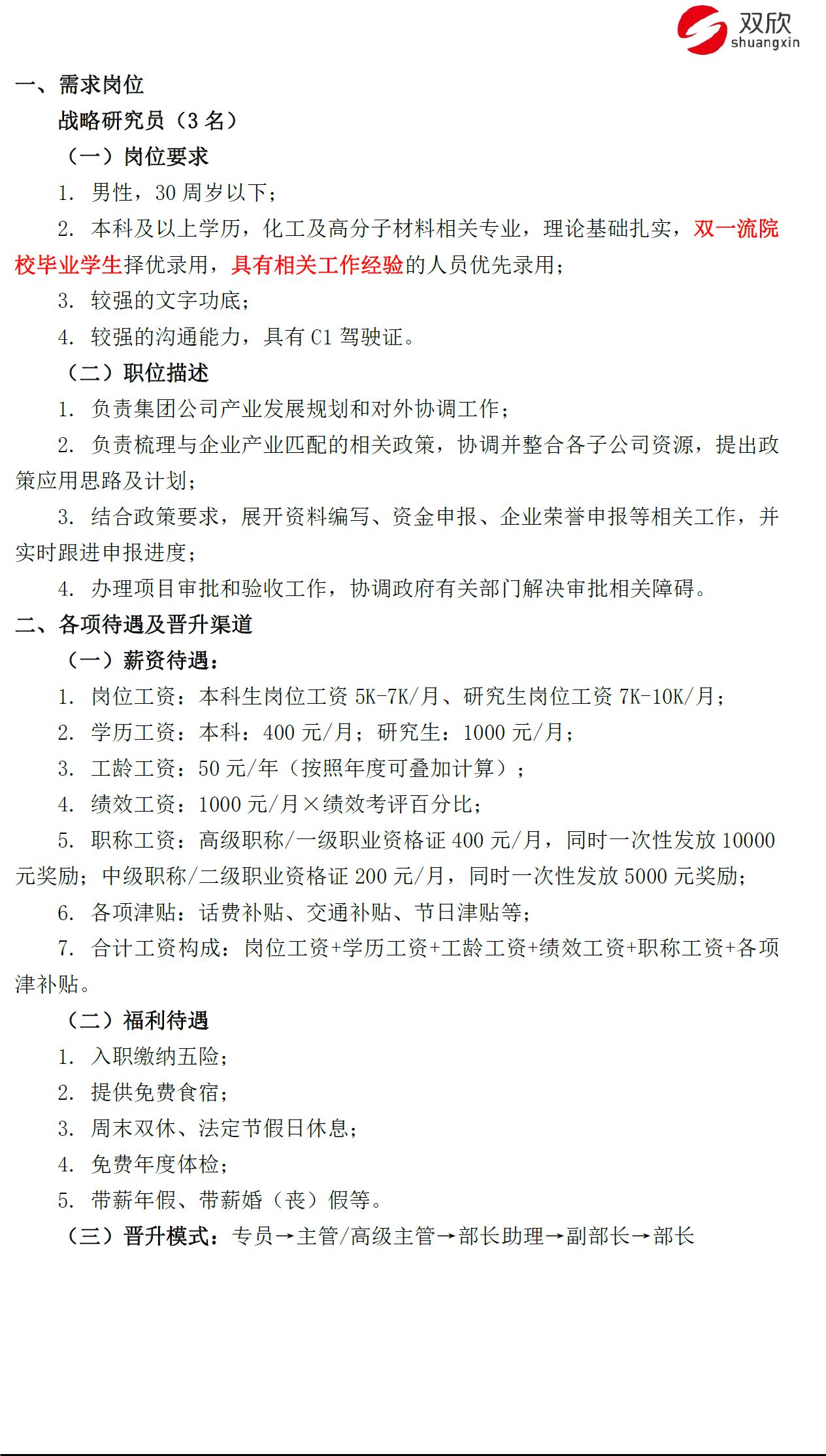 内蒙古双欣能源化工有限公司招聘简章