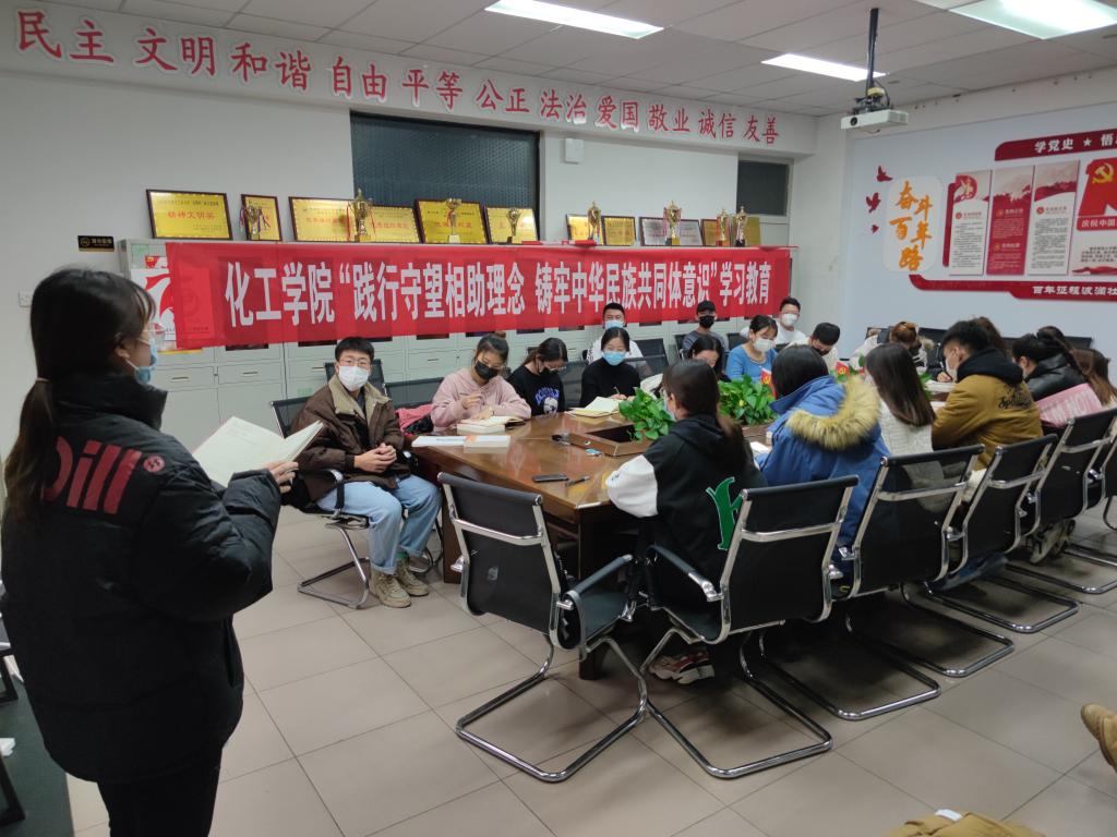 为深入践行守望相助理念,不断夯实铸牢中华民族共同体意识的思想基础,11月6日-7日,化工学院应用化学专业学生党支部、食品生物与制药学生党支部等集中组织开展“学习践行守望相助理念、铸牢中华民族共同体意识”专题学习教育活动。活动由各支部负责人主持。