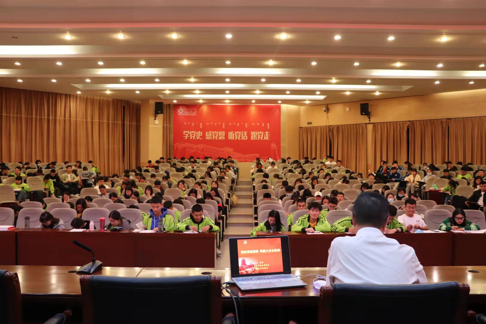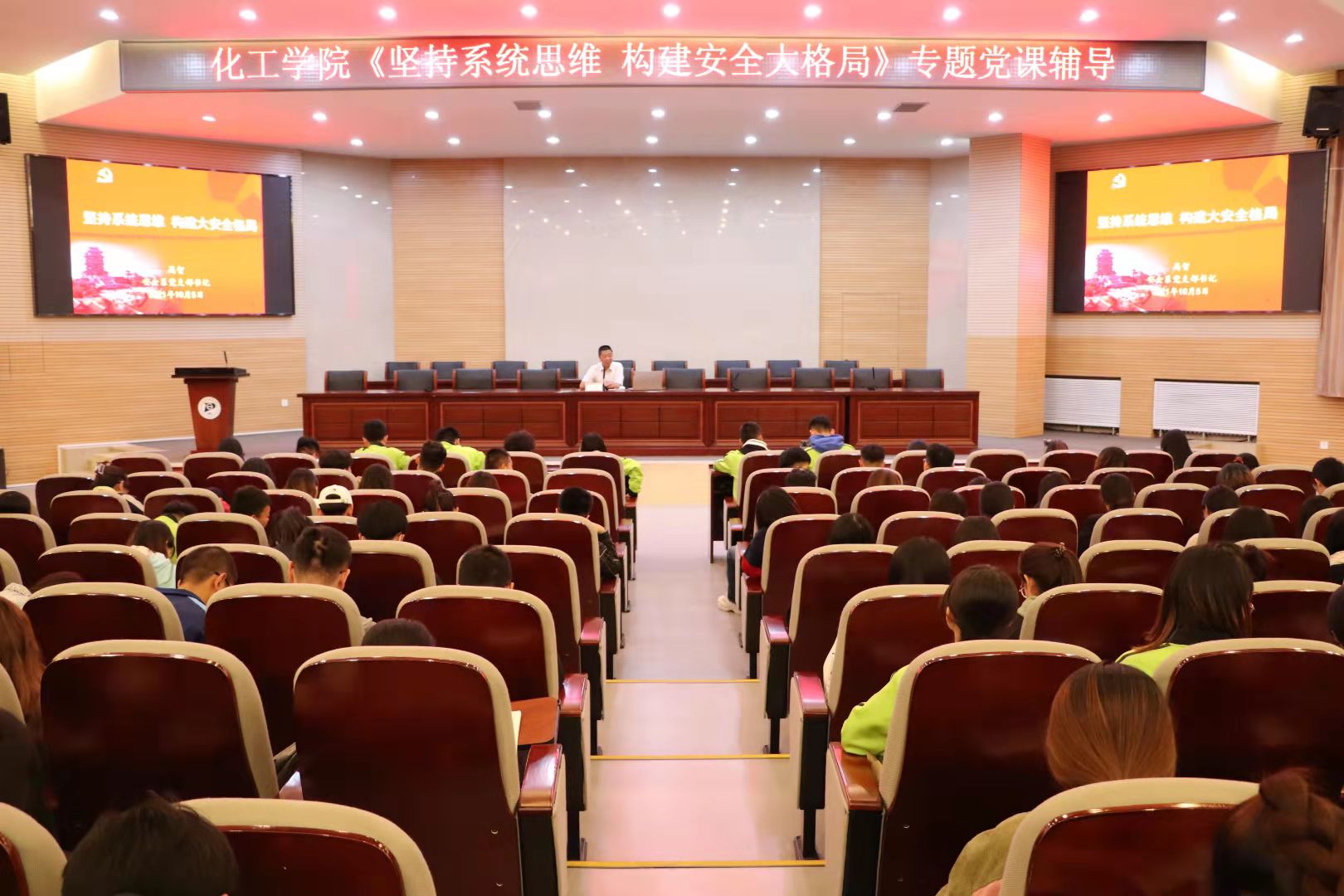 化工学院党委于10月5日晚在化工楼报告厅,举办《坚持系统思维,构建大安全格局》的专题党课辅导报告。安全系教师党支部书记、系主任高智老师担任主讲,学院各支部入党积极分子和党员发展对象共379人参加。