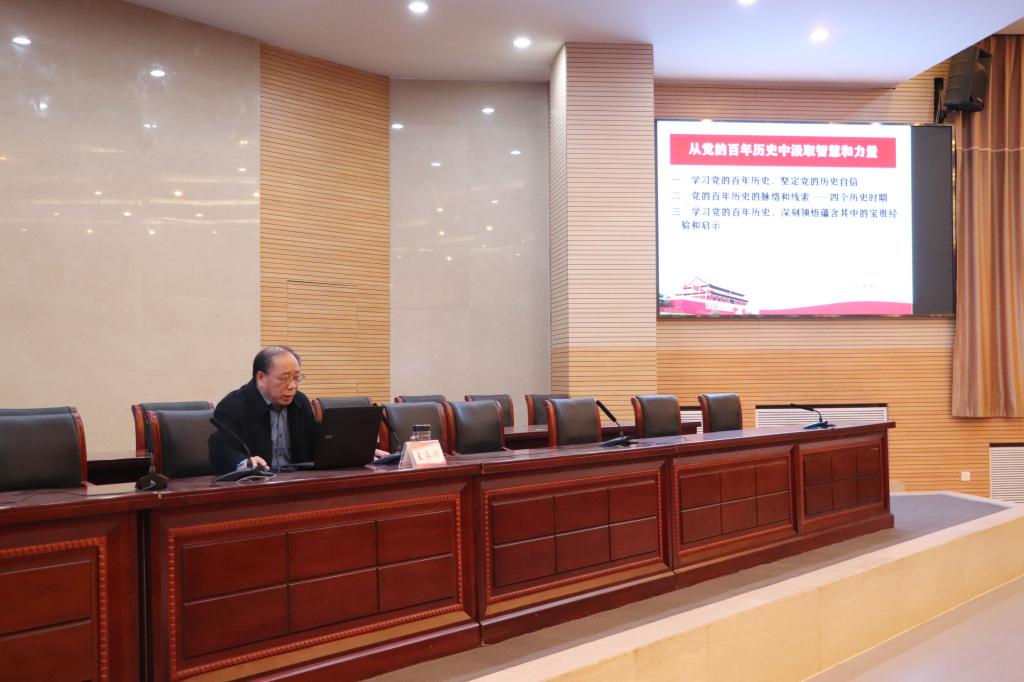王永顺老师围绕坚定党的历史自信、党的百年历史脉络和线索、深刻领悟蕴含其中的宝贵经验和启示等三个方面,图文并茂、案例详实地进行了阐释。