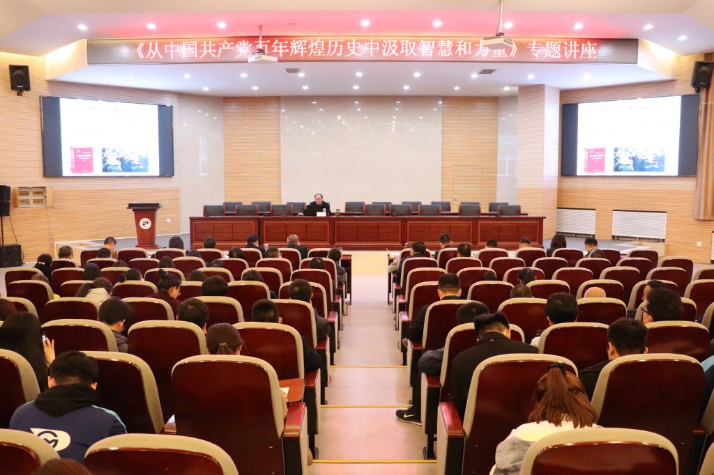3月18日下午,化工学院在化工楼报告厅举办党史学习教育首场专题讲座。邀请我校马克思主义学院硕士生导师、内蒙古自治区老教授报告团成员、内蒙古工业大学关工委常务副主任王永顺教授作题为《从中国共产党百年辉煌历史中汲取智慧和力量》的专题讲座。学院全体教工党员、学生党员及2021年春季学期党员发展对象共450余人参加。