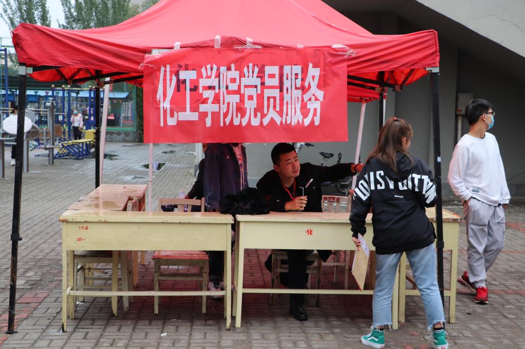 化工学院党员志愿者们为新同学提供相关咨询并解答疑惑,引导新同学办理报到入学相关手续,主动分享大学心得,介绍学院优势特色,帮助学弟学妹们搬运行李,熟悉校园学习、生活环境,让2020级新同学感受到了学院的温暖和归属感。