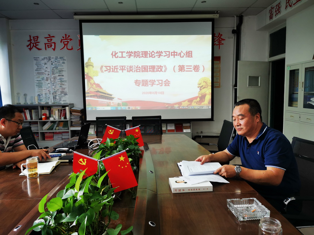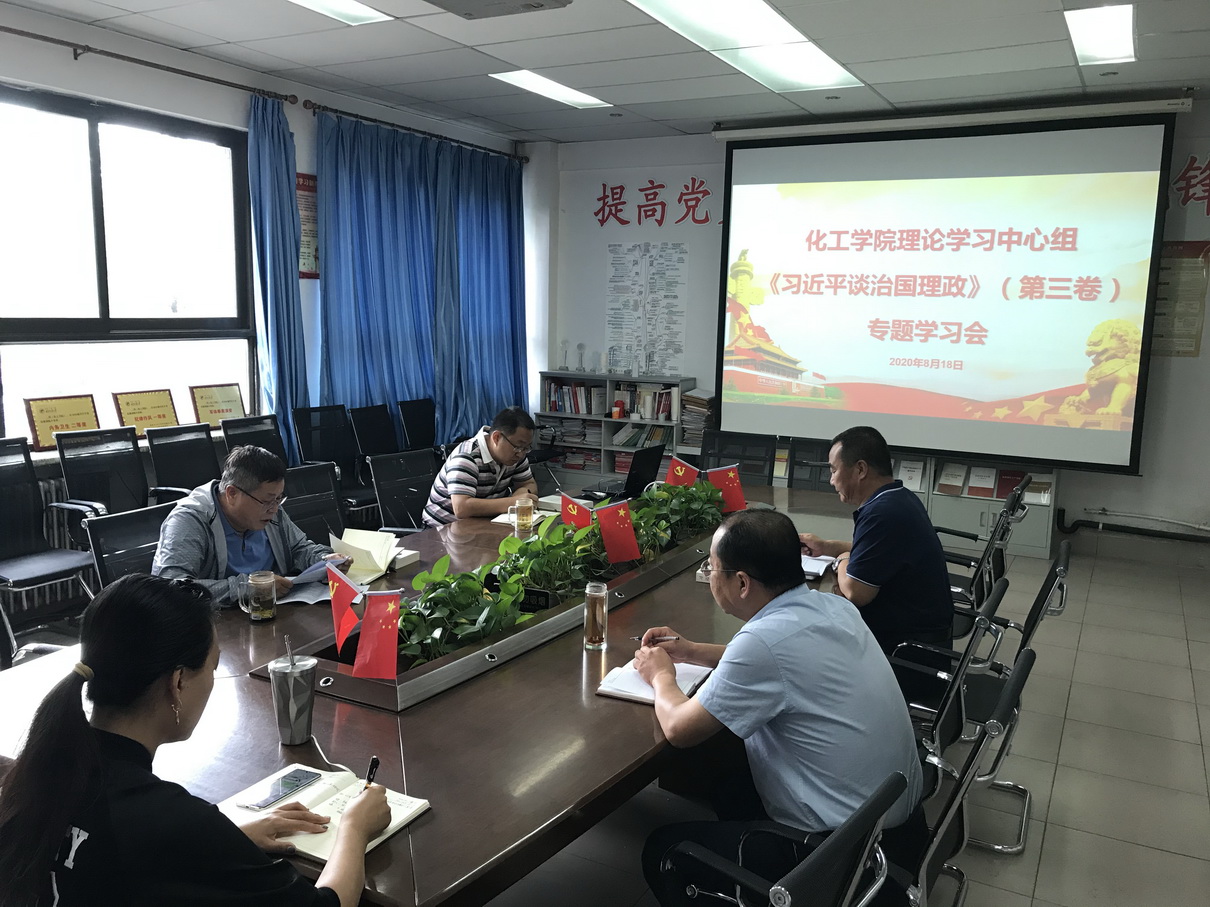 8月18日上午,化工学院理论学习中心组召开《习近平谈治国理政》(第三卷)专题学习会,学院全体党委委员参会,会议由院党委书记王凯主持。