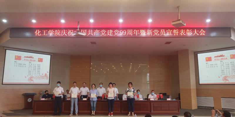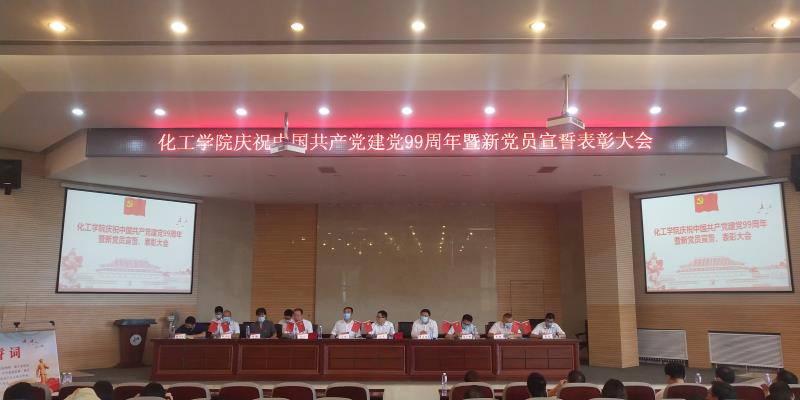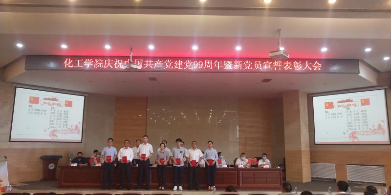 为庆祝中国共产党建党99周年,进一步巩固我院“不忘初心、牢记使命”主题教育成果,进一步发挥党支部的战斗堡垒作用和党员先锋模范作用,化工学院于7月2日下午召开了庆祝中国共产党建党99周年系列表彰暨党员宣誓大会。学院全体教职工党员在主会场参会,全体学生党员以线上视频的方式参会,会议由党委副书记、副院长张建主持。