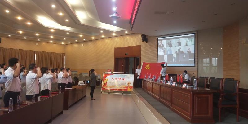 会上,副院长白杰宣读了《化工学院关于表彰疫情防控工作中的优秀共产党员及2020上半年学习强国学习达人的决定》,并向受表彰的人员颁发了荣誉证书;学院党委委员任敏带领11名新党员及全体学生党员线上宣誓,全体教工党员重温了入党誓词。