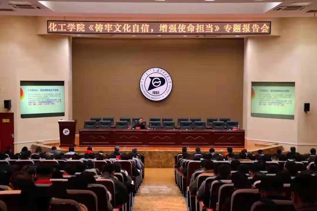 为进一步提升师生党员的文化自信意识,牢记初心使命,切实肩负起文化自信的责任担当。11月28日,化工学院党委召开《铸牢文化自信,增强使命担当》专题报告会。邀请内蒙古工业大学党委讲师团成员、马克思主义学院李慧教授主讲。学院全体教工党员、学生党员、发展对象代表等近400人参加,化工学院党委副书记、副院长张建主持。