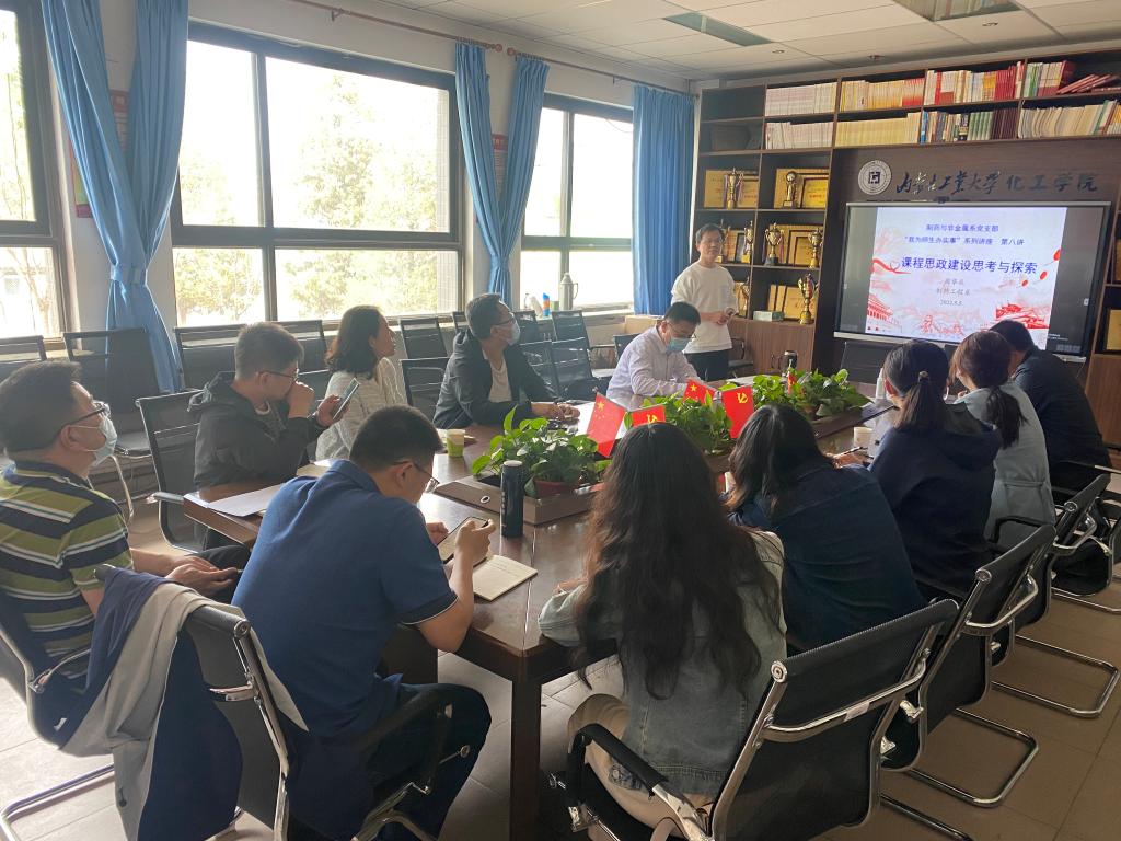 5月5日,化工学院制药与非金属系党支部在化工楼211会议室开展“课程思政建设思考与探索”专题研讨,制药与非金属系党支部成员及部分非党员教师代表参加了讲座。
