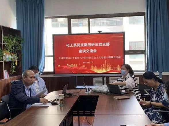 6月1日下午,化工学院化工系党支部开展了学习贯彻习近平新时代中国特色社会主义思想主题教育走访调研党日活动,与学院研三学生党支部进行了关于就业问题座谈会。