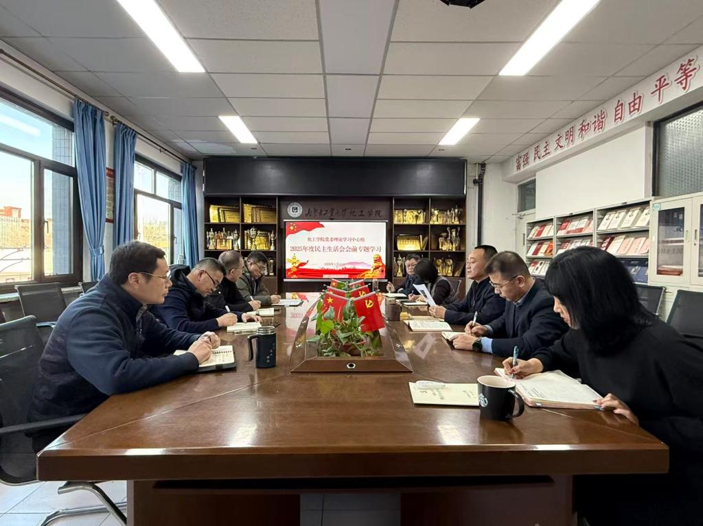 1月13日下午,化工学院党委理论学习中心组召开2025年度民主生活会前专题学习会,重点学习贯彻习近平总书记在中央政治局民主生活会上的重要讲话精神、2026年全国教育工作会议精神,为开好2025年度民主生活会打牢思想基础。院党委书记王凯主持会议并领学,全体党委委员参加。