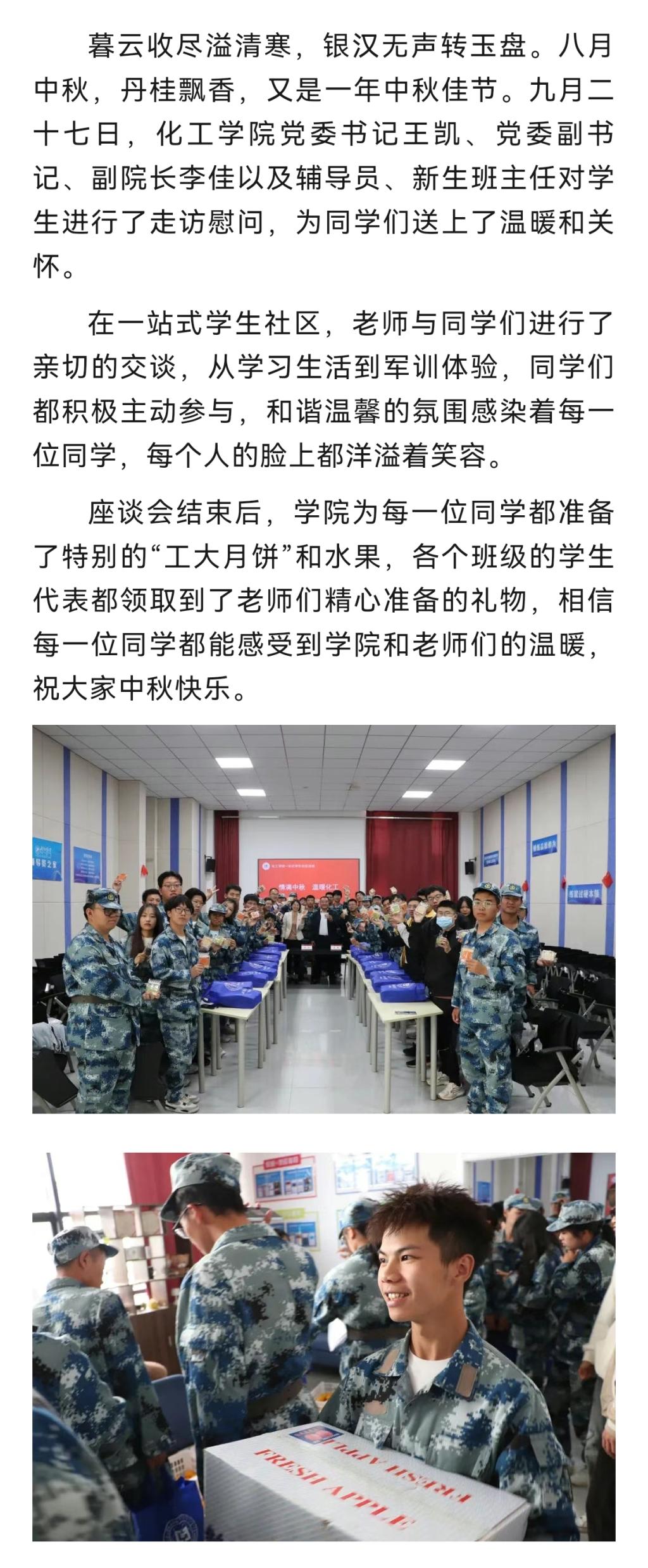 一站式学生社区建设|化工学院举行“情满中秋 温暖化工”中秋慰问活动