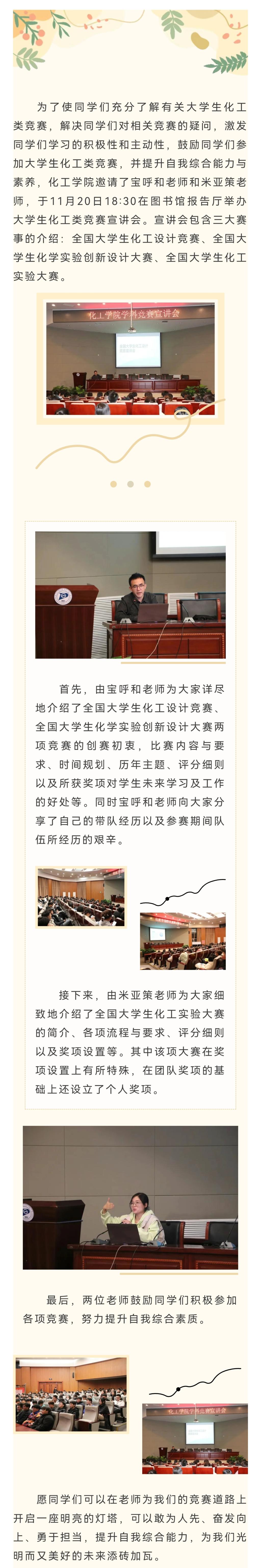 一站式学生社区建设|化工学院举办大学生化工类竞赛宣讲会