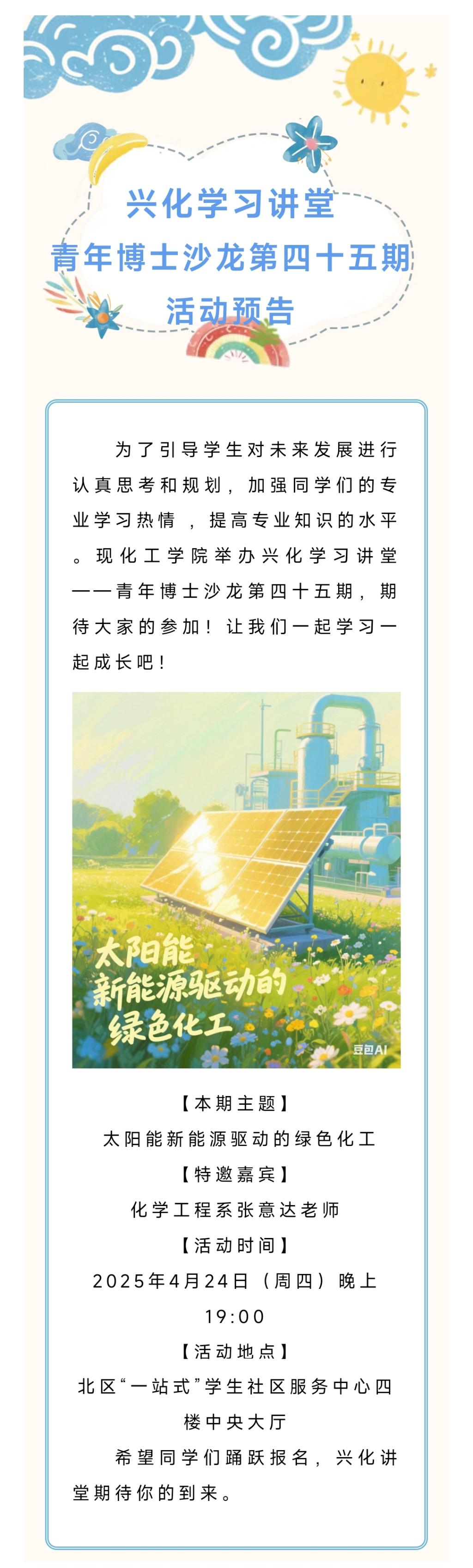化工学院兴化学习讲堂|青年博士沙龙第四十五期预告